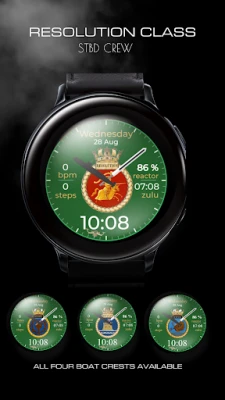 Resolution Class Watchface. Select Ships crests of all four boats in the Class. Always on display Reactor levels = Watch Battery Power. Hour hand displays the RESOLUTION CLASS SSBN or Polaris A3 Missile Selectable Minute Hand Second Hand either Dolphins or traditional second hand.