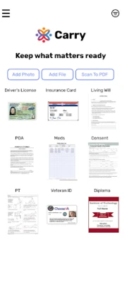 - Add a photo that does not appear in your camera roll - Carry is partitioned from the rest of your mobile operating system. Go ahead, take a picture of your ID and passport, only you have access to it!