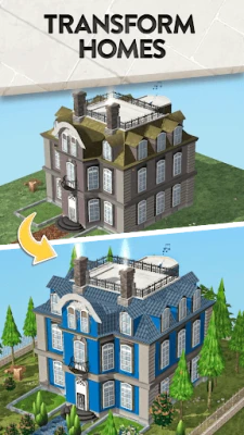 Remodel houses on a renovation world tour and explore international architecture while collecting design skills and swatches! Live the house flipper dream and become an expert in buying low and selling high in our decorating sims game.